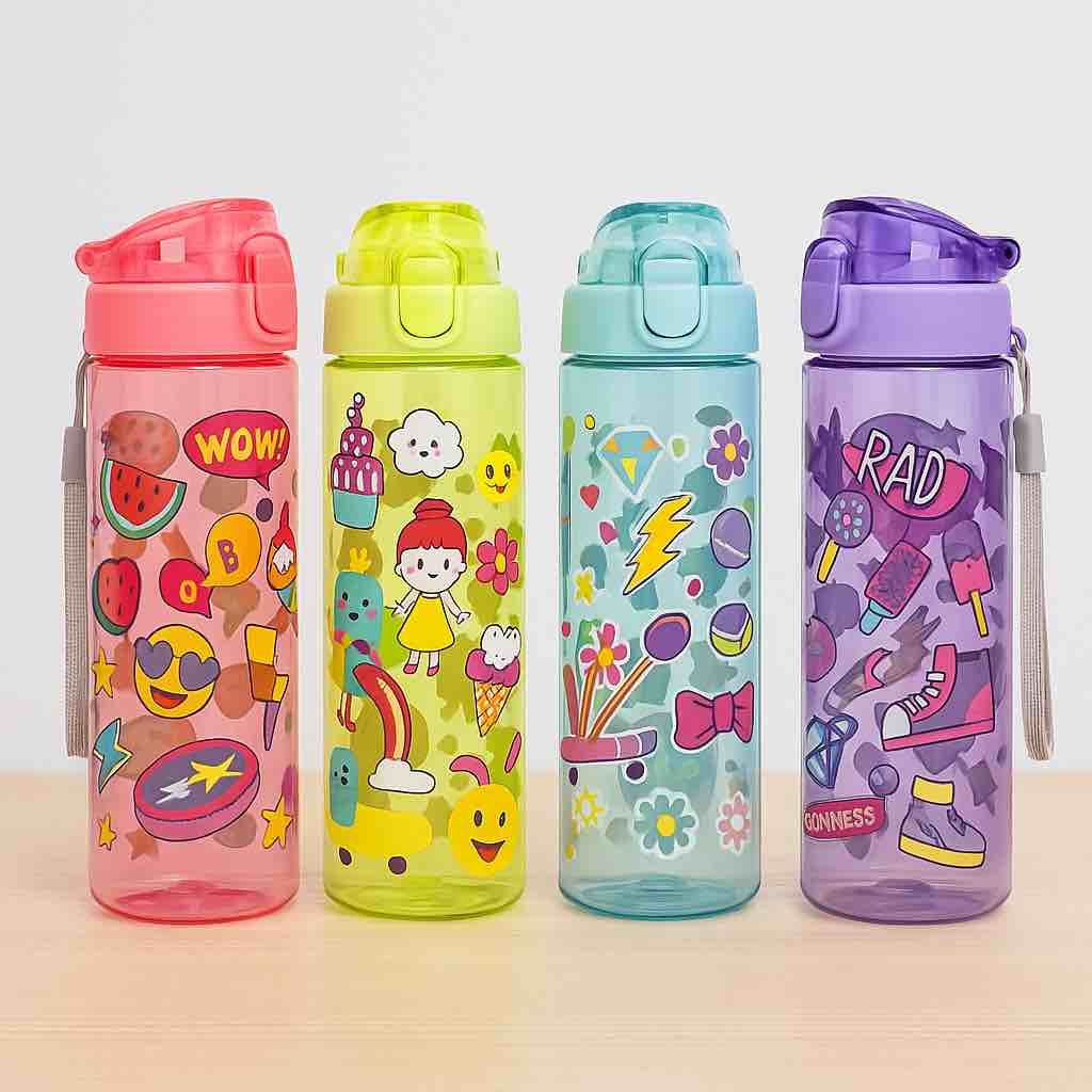 These Multi-Colours Printed Sipper Bottles are made from high-quality PP plastic and feature vibrant prints for a fun look. Lightweight and durable, they?re perfect for school, gym, or outdoor use with a convenient sipper lid.