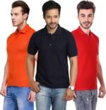 One-H Men’s Polo Neck Short Sleeve Casual Tshirt Combo of Dark Blue, Red, Orange colors (Pack of 3)