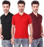 One-H Men’s Polo Neck Short Sleeve Casual Tshirt Combo of Red, Maroon, Black colors (Pack of 3)